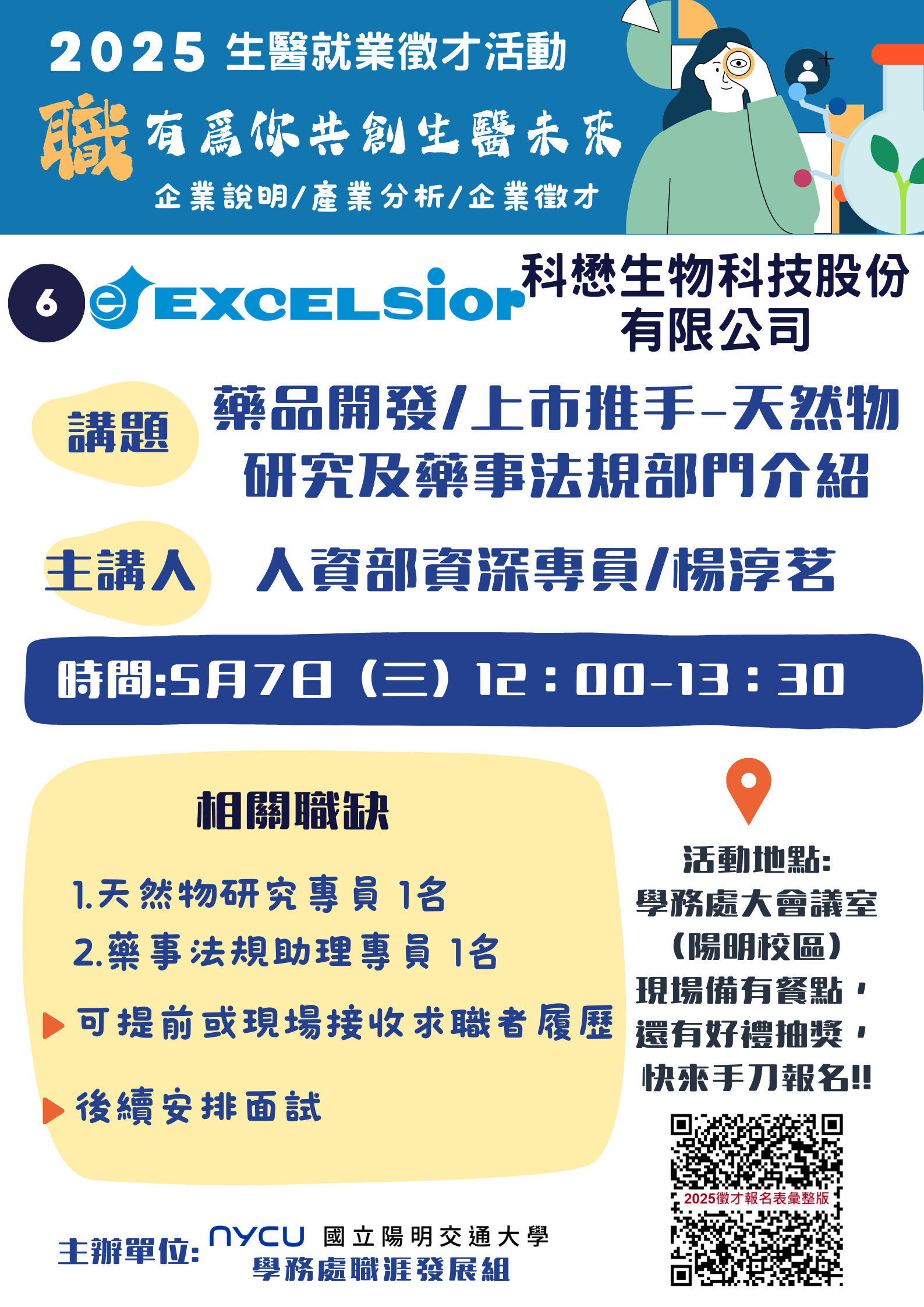 【2025生醫產業趨勢x企業說明會】5/7(三) 科懋生物科技股份有限公司-職缺搶先看