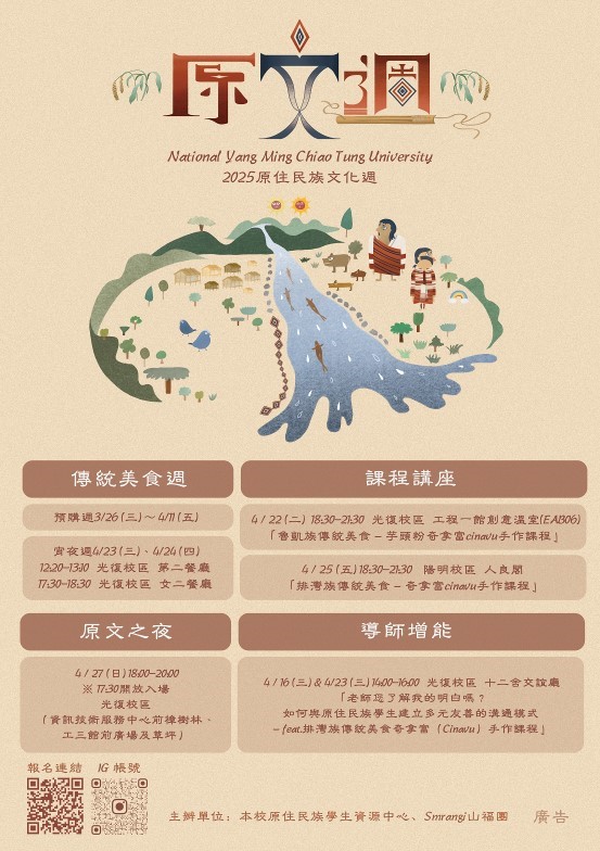 「2025原住民族文化週」系列活動,歡迎有興趣的師生踴躍報名參與唷!